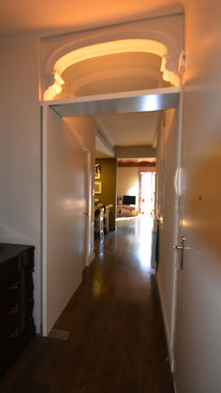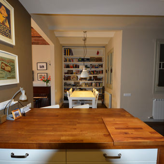 La intervención sobre un clásico piso del ensanche pretende limitar las características negativas asociadas a la gran profundidad edificable y a la multiplicación de espacios secundarios asociados a los patios interiores de ventilación. Se trata de una estrategia clásica que permite unificar los espacios de día agrupándolos en la fachada principal y aumentar la polivalencia y versatilidad del núcleo interior de la vivienda, donde se mantienen las zonas de baños y aparecen espacios más fluidos interrelacionados con la circulación de fachada a fachada. El programa se completa con los espacios de habitaciones en la fachada interior que comparten la tradicional galería como mecanismo filtro de relación con el exterior.